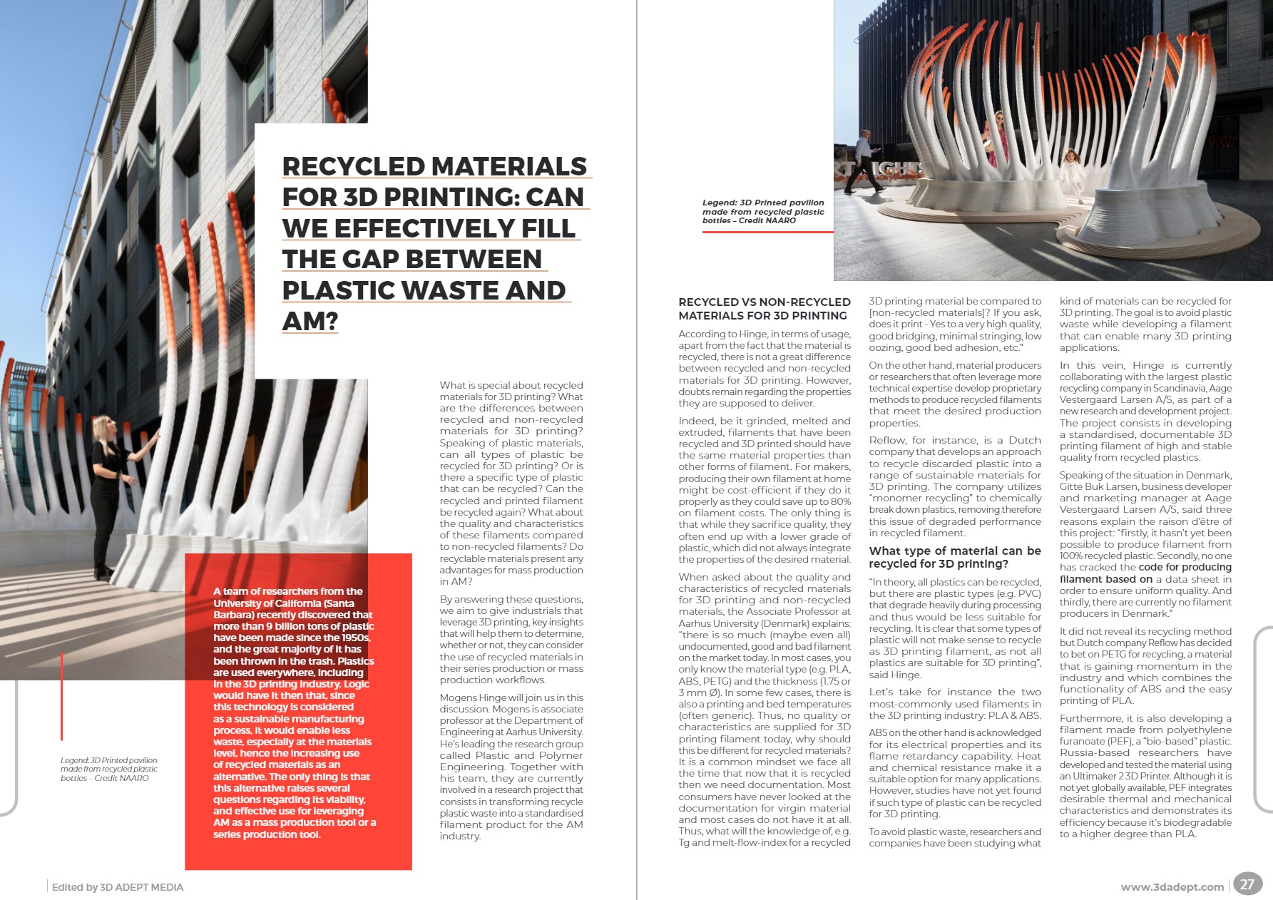 A team of researchers from the University of California (Santa Barbara) recently discovered that more than 9 billion tons of plastic have been made since the 1950s, and the great majority of it has been thrown in the trash. Plastics are used everywhere, including in the 3D printing industry. Logic would have it then that, since this technology is considered as a sustainable manufacturing process, it would enable less waste, especially at the materials level, hence the increasing use of recycled materials as an alternative. The only thing is that this alternative raises several questions regarding its viability, and effective use for leveraging AM as a mass production tool or a series production tool.