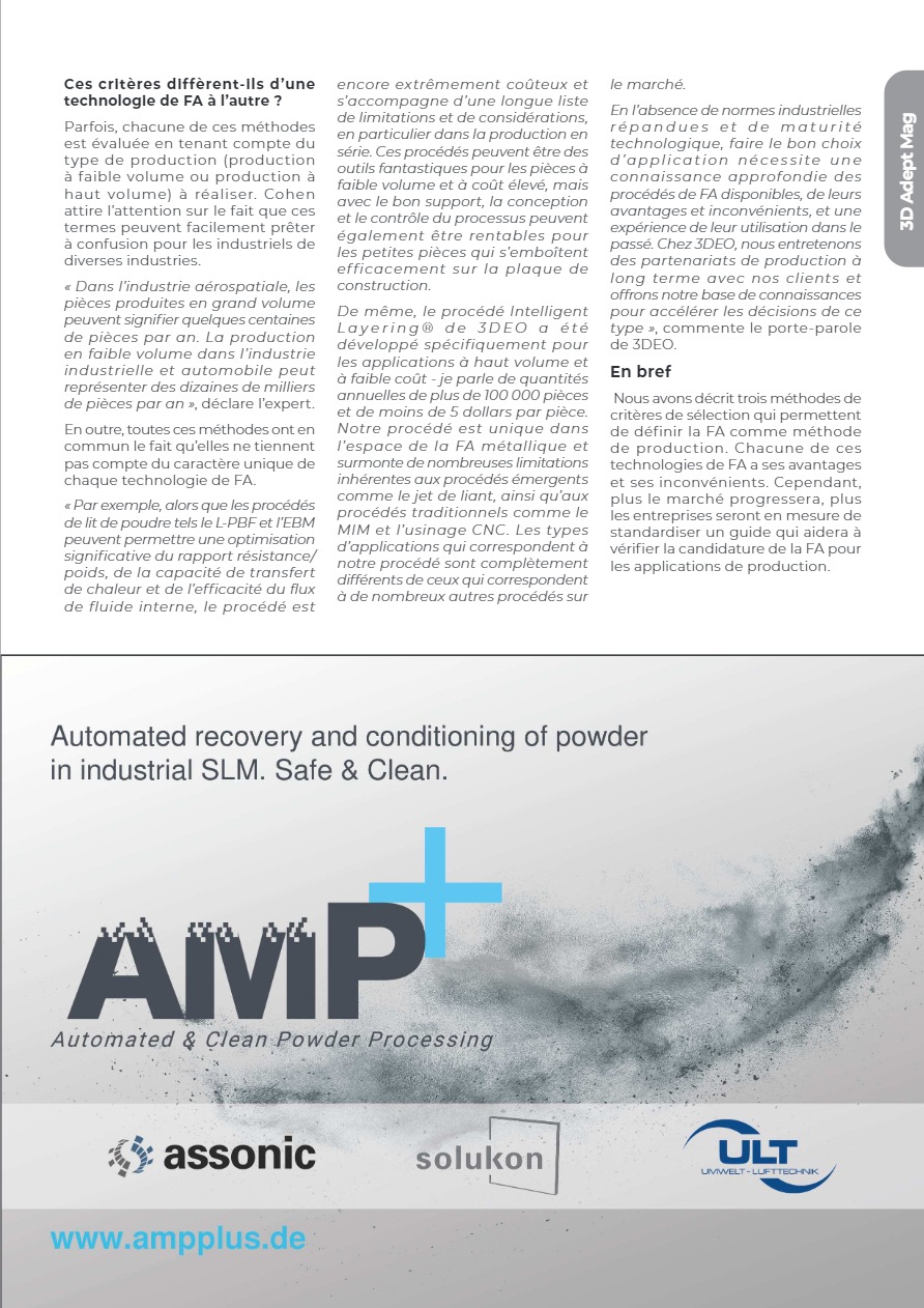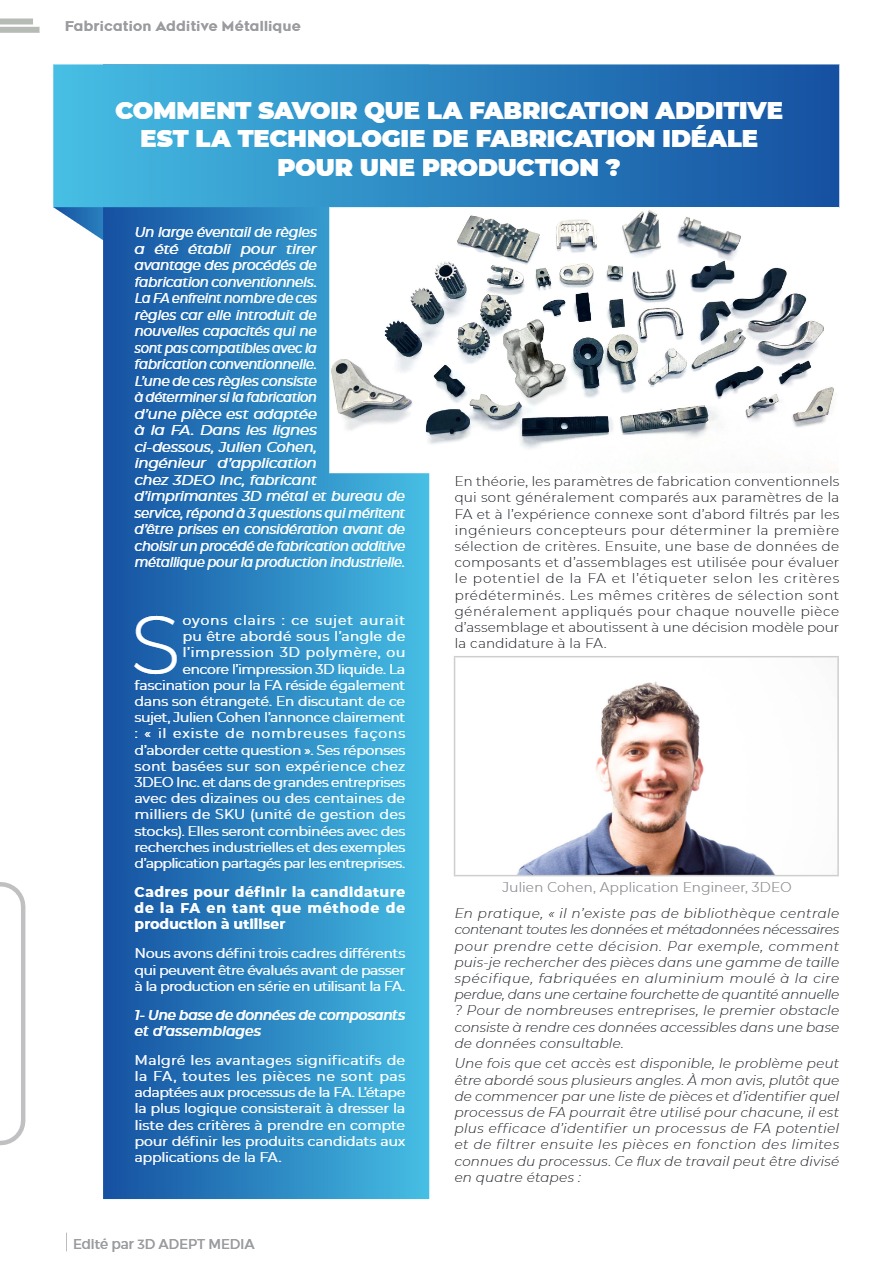 Dans ce numéro de juillet/août de 3D ADEPT Mag, nous abordons une nouvelle série de sujets qui s’inscrivent dans le cadre des défis actuels de l’industrie de la fabrication additive.