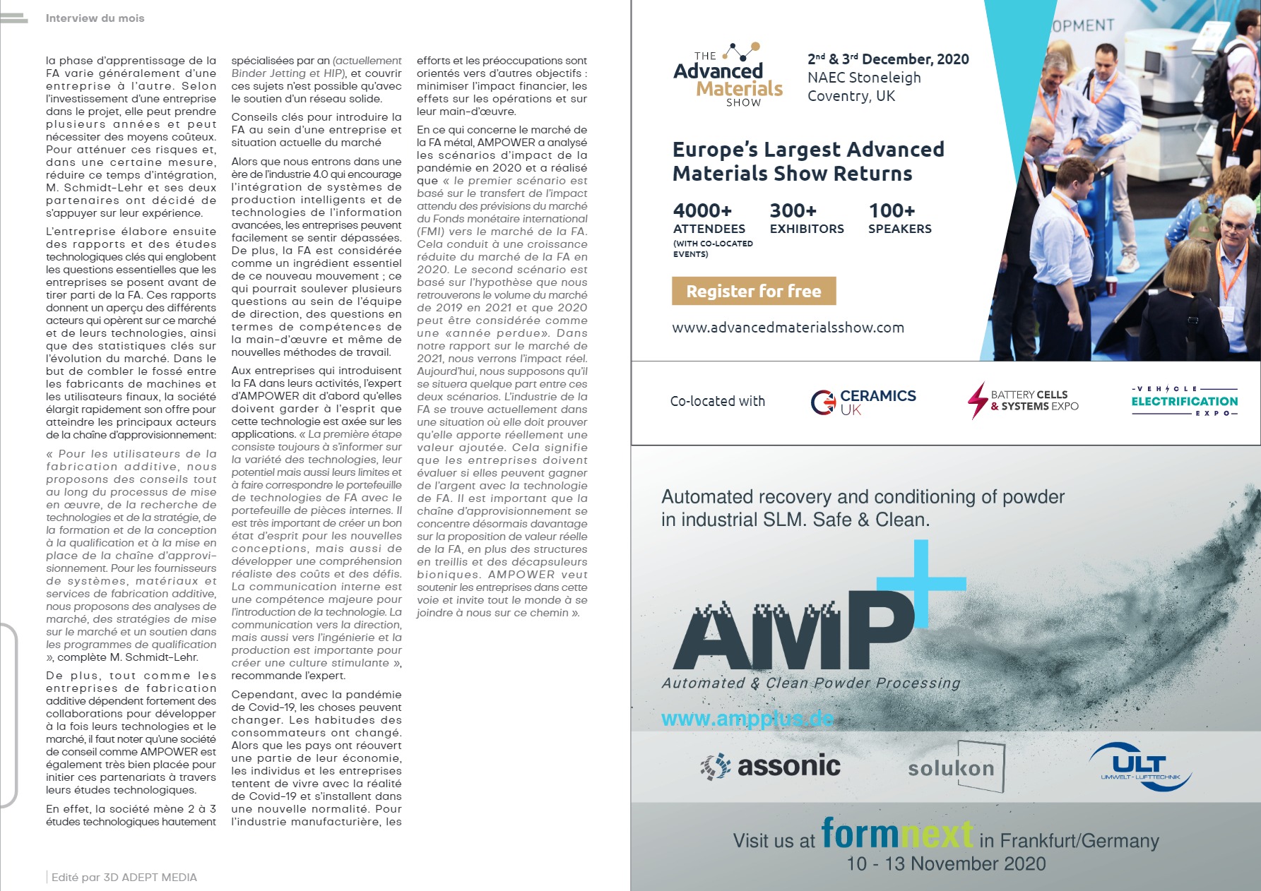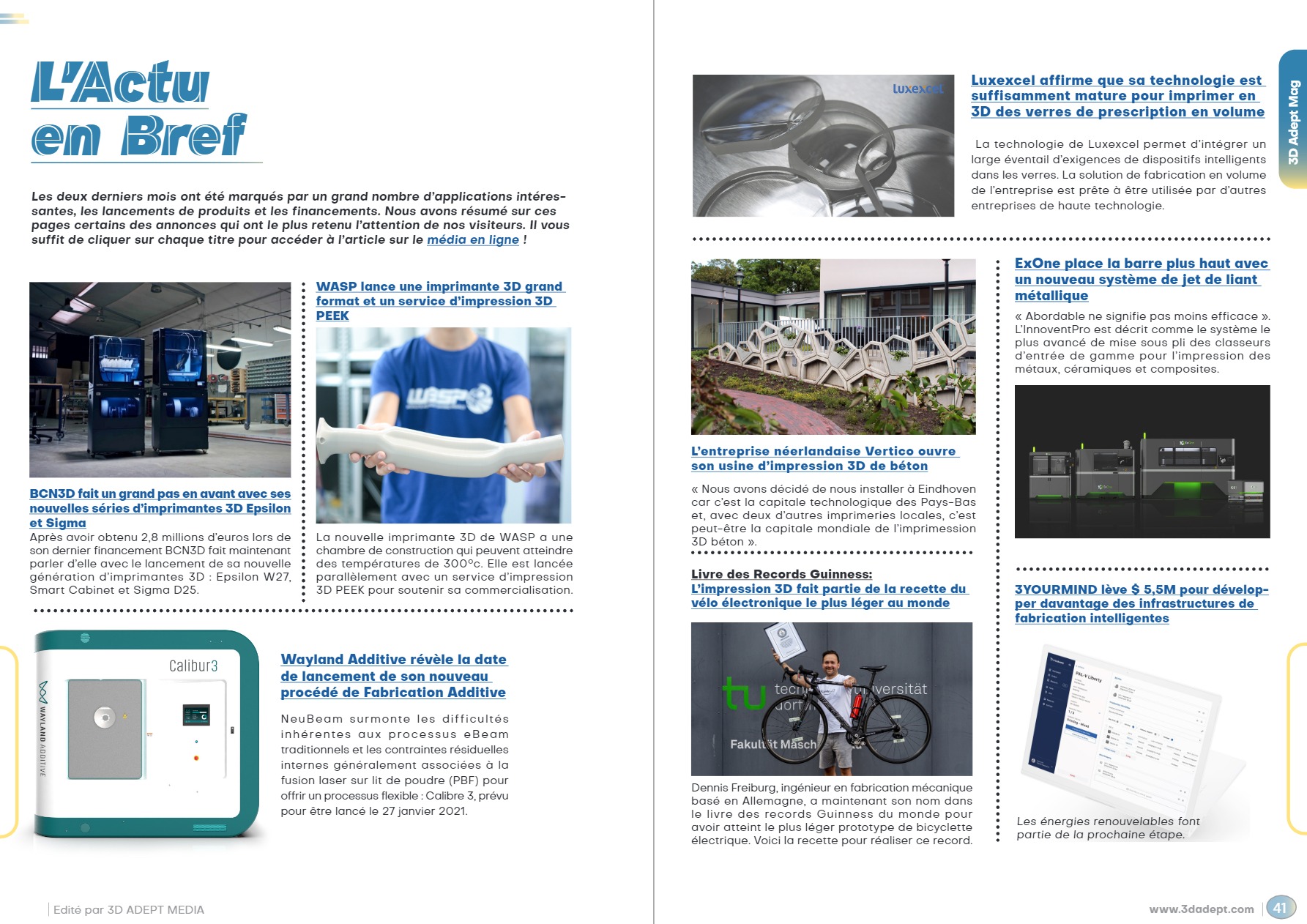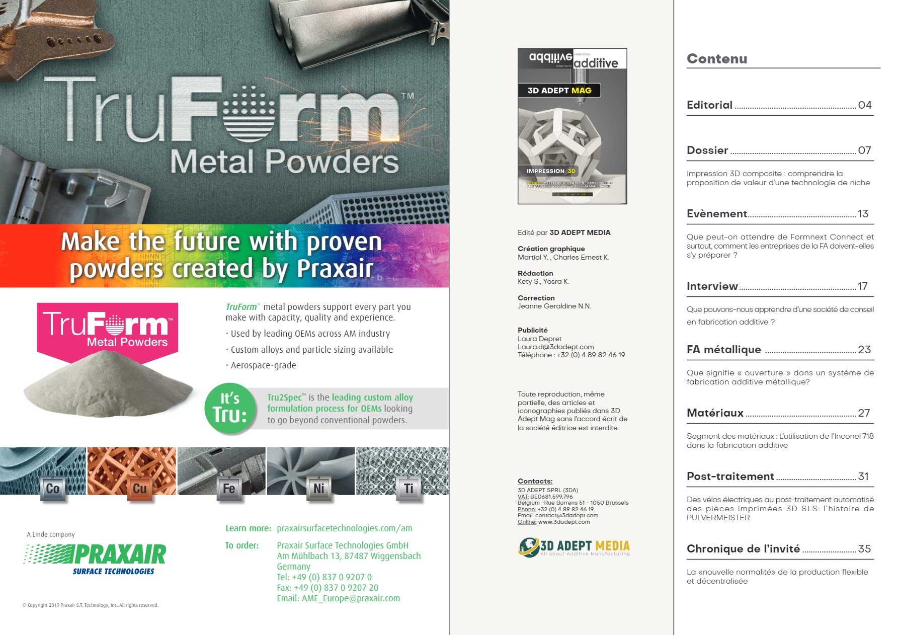 Tous les numéros de 3D ADEPT MAG sont distribués gratuitement dans tous les événements de la fabrication additive où 3D Adept est un partenaire média.