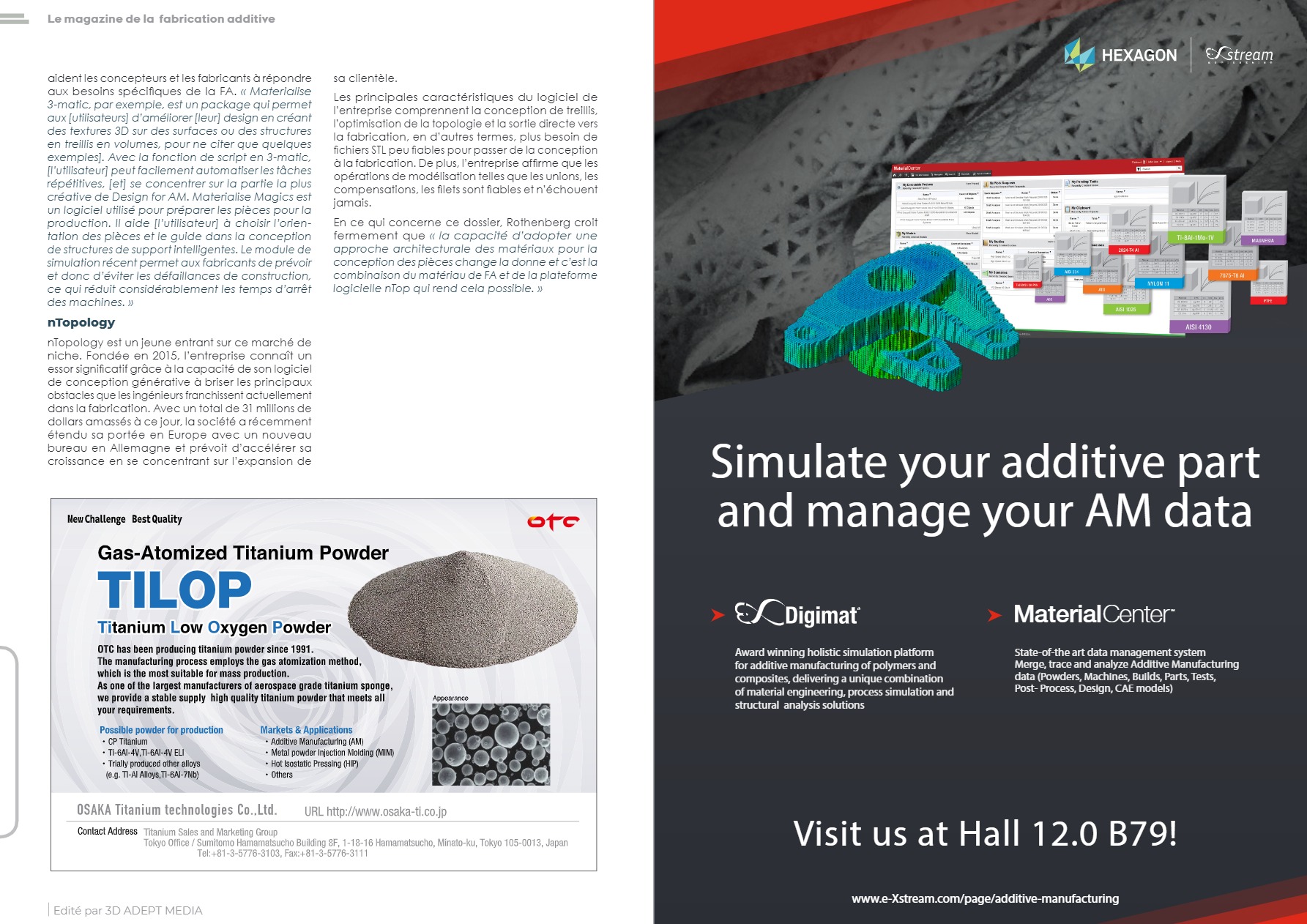 Tous les numéros de 3D ADEPT MAG sont distribués gratuitement dans tous les événements de la fabrication additive où 3D Adept est un partenaire média.