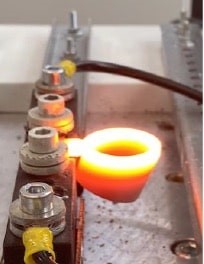 Une bobine incorporée conforme dans un processus hybride d’alumine est particulièrement innovante pour les applications d’électromagnétisme comme une bobine incorporée dans une pièce d’alumine. L’image ci-dessous montre une référence adaptée à cette application. Le petit solénoïde métallique est incorporé dans la pièce d’alumine par fabrication additive. La résolution actuelle est proche de 0,5 mm de diamètre, mais elle peut être améliorée par un système de dosage plus précis.