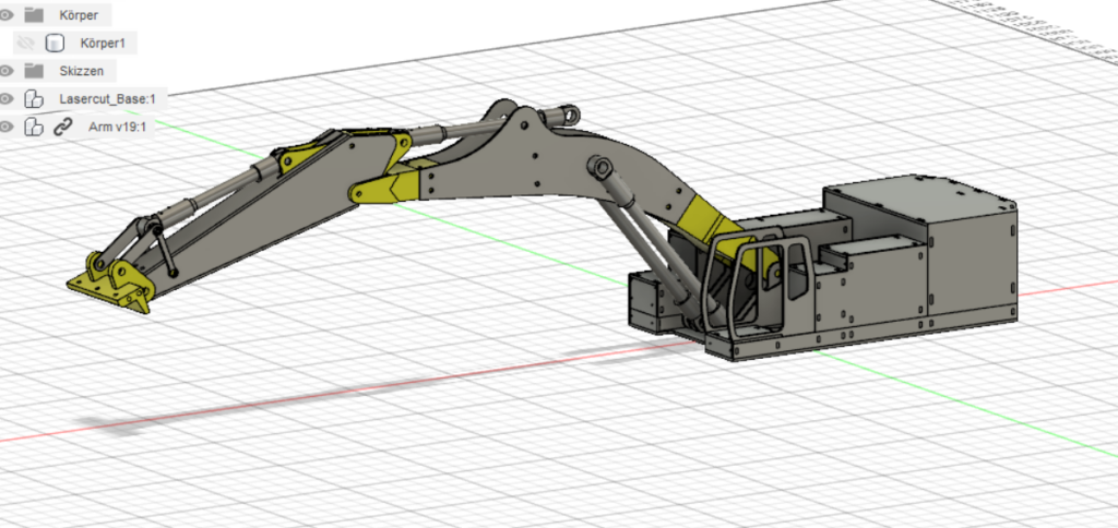 Like the rc crane before, most of the parts will be laser cutted out of 3mm plywood. There will also be a special system which memes the hydraulics. As I’m planning to release the plans for the public afterwards I want it to be doable for small money. A plug and play hydraulic cylinder at this size (300mm upwards) will cost up to 200 euro. So I designed my own system which is using a geared dc motor. Compared to the plug and play system, the costs for one cylinder will be around 40 euros instead of 200.