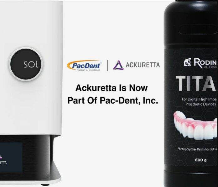 Pac-Dent, Inc., an expert in preventive care, infection control, Rodin® dental 3D printing resins, along with 3D printing–oriented restorative materials, acquires Ackuretta Technologies (established in 2013), a Taiwan-based provider of dental 3D printing solutions.
