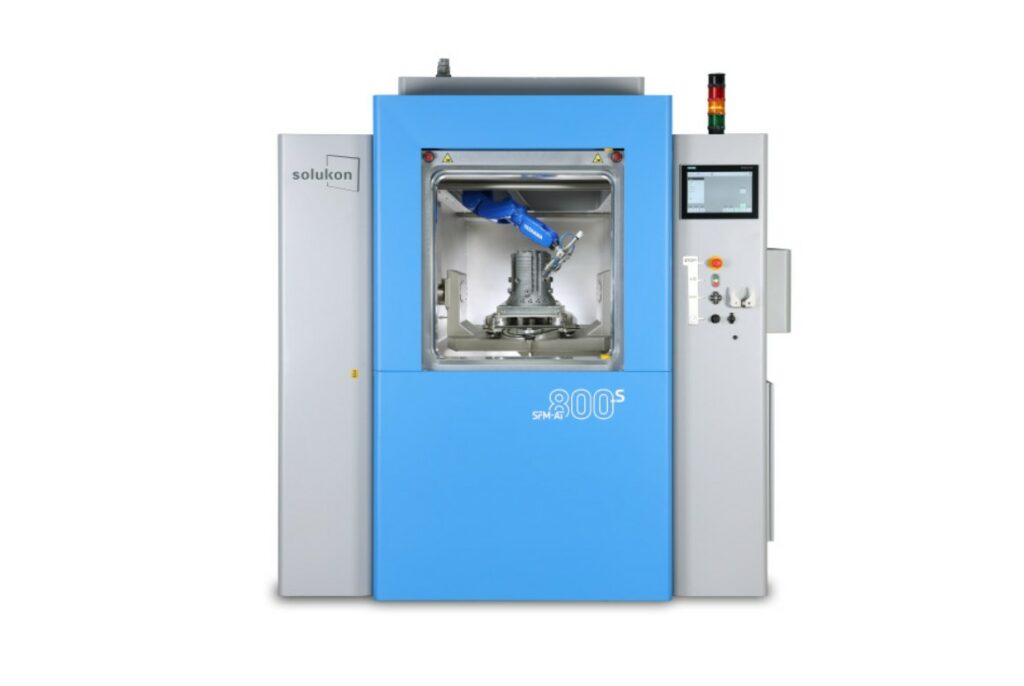 Si on examine les concepts qui ont dépassé le stade de la recherche, il est désormais possible pour le système de dépoudrage automatisé SFM-AT800 de Solukon de communiquer en permanence avec un centre de contrôle tout en étant chargé par un robot. À cette fin, il a été équipé d’une porte de chargement spéciale et d’un système de serrage automatique.