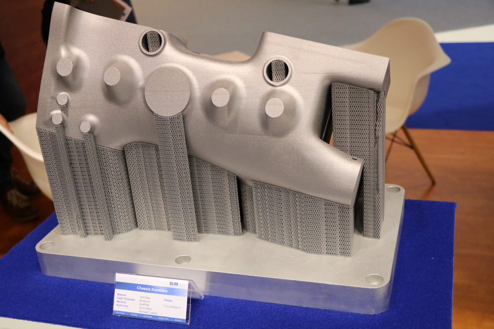 Les visiteurs et les représentants de la presse ont également pu découvrir des pièces de suspension et de châssis légères, telles qu’un jeu de bras de commande, conçues et validées. Les pièces présentées ont été fabriquées sur la gamme de machines SLM Solutions : SLM®800, SLM®500 et SLM®280 – et ont enduré avec succès plus de 450 000 kilomètres de conditions routières simulées.
