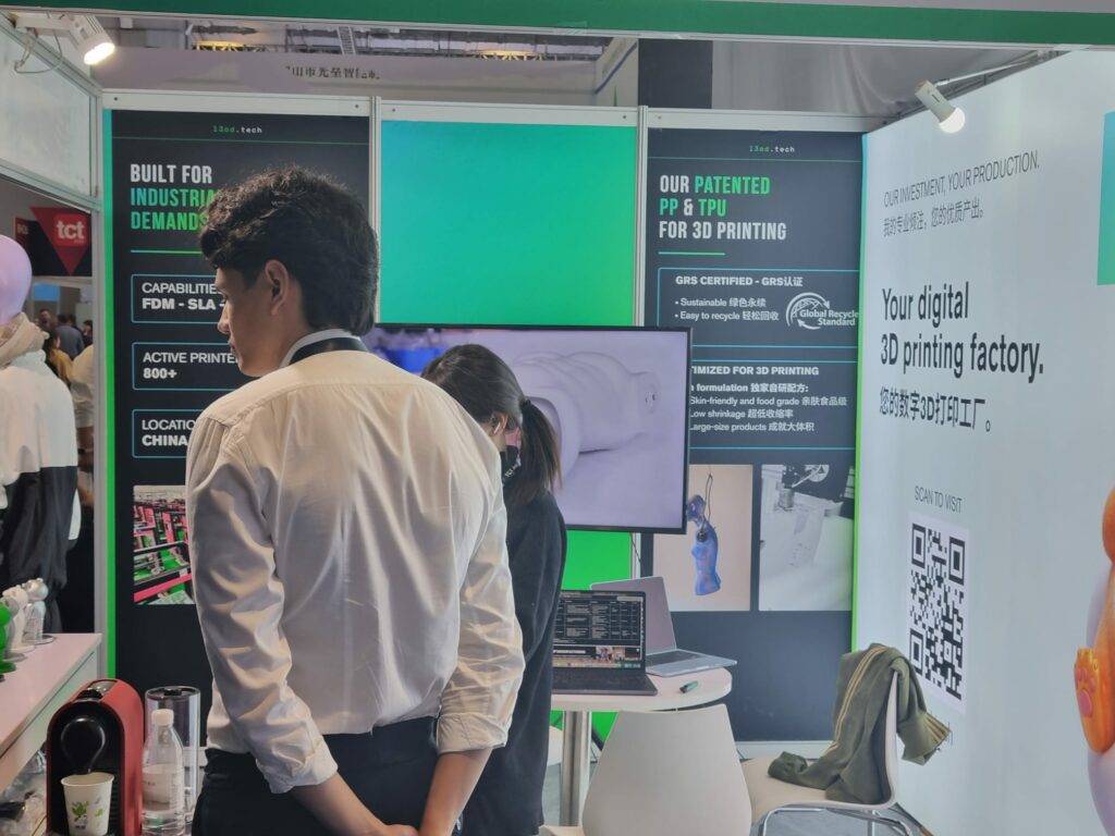 The moment I stepped in, the atmosphere shifted. Where Hall 7.1 had felt industrial, purposeful, dense, serious, Hall 8.1 felt closer to a mall. Booth layouts resembled consumer stores more than exhibition stands. 3D printed shoes dominated the floor and clearly held the title of hottest consumer product of the show. Around them: 3D printed lamps, keychains, toys, objects that made the technology feel immediate and accessible in a way that metal AM rarely does.