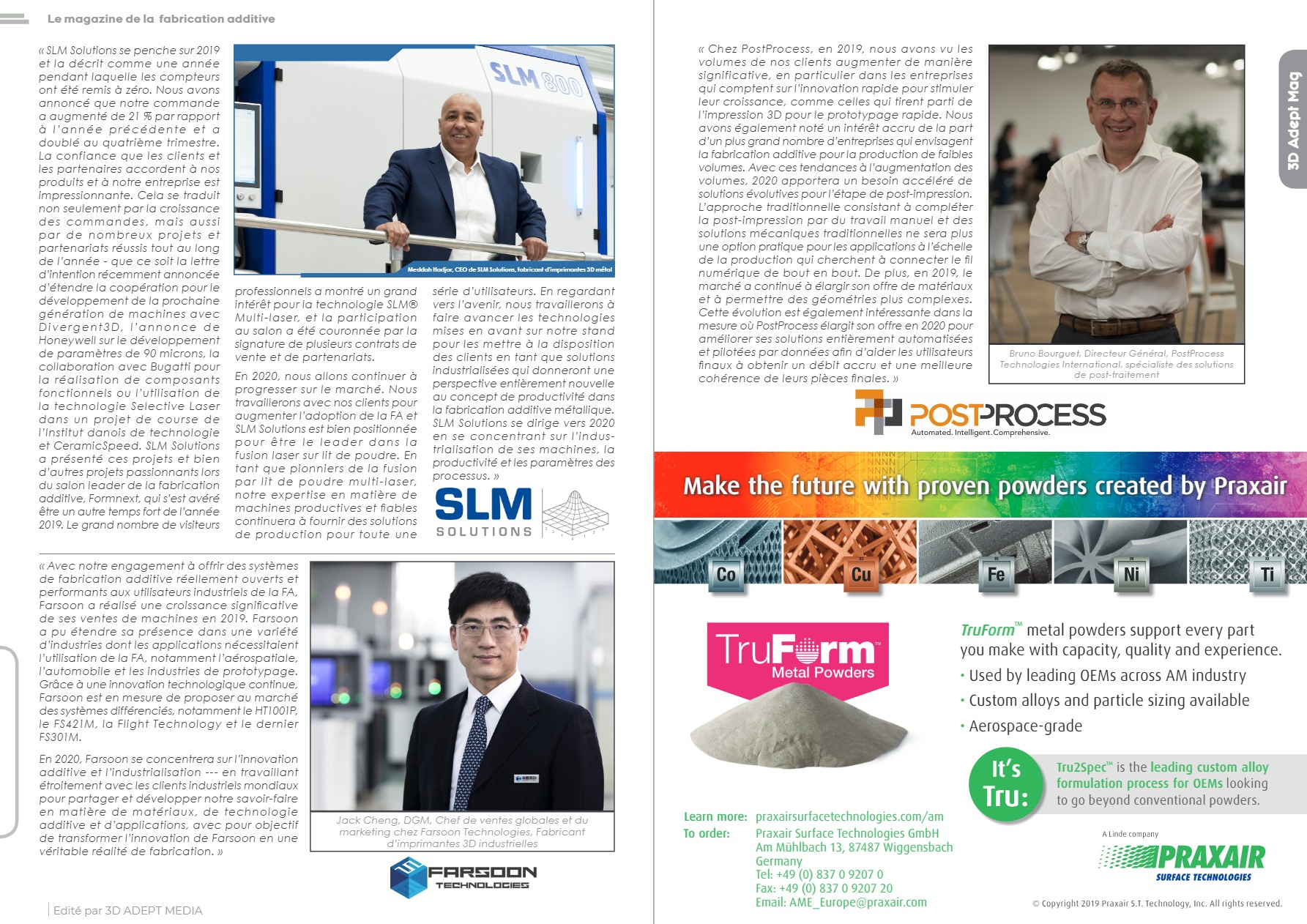 N’oubliez pas que vous pouvez poster gratuitement les offres d’emploi de l’industrie de la FA sur 3D ADEPT Media ou rechercher un emploi via notre tableau d’offres d’emploi. N’hésitez pas à nous suivre sur nos réseaux sociaux et à vous inscrire à notre newsletter hebdomadaire : Facebook, Twitter, LinkedIn & Instagram ! Si vous avez une innovation à partager pour le prochain numéro de notre magazine numérique ou si vous avez un article à faire connaître, n’hésitez pas à nous envoyer un email à contact@3dadept.com. Bonne année !
