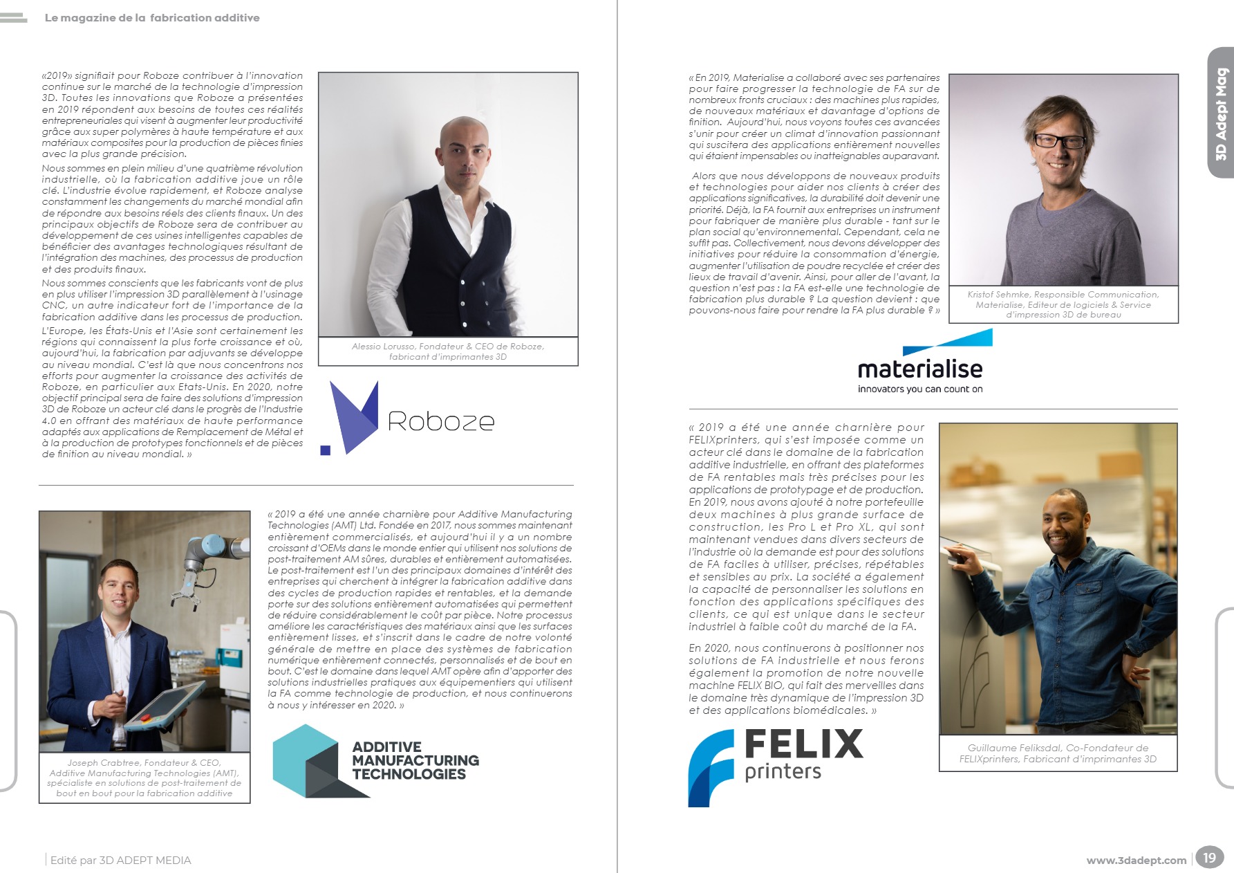 « Que signifie 2019 pour les entreprises de la Fabrication Additive et comment perçoivent-elles le marché en 2020 ? »– Avec les contributions: des Fabricants d’imprimantes, des producteurs de matériaux, des éditeurs de logiciel, et des spécialistes de R&D.